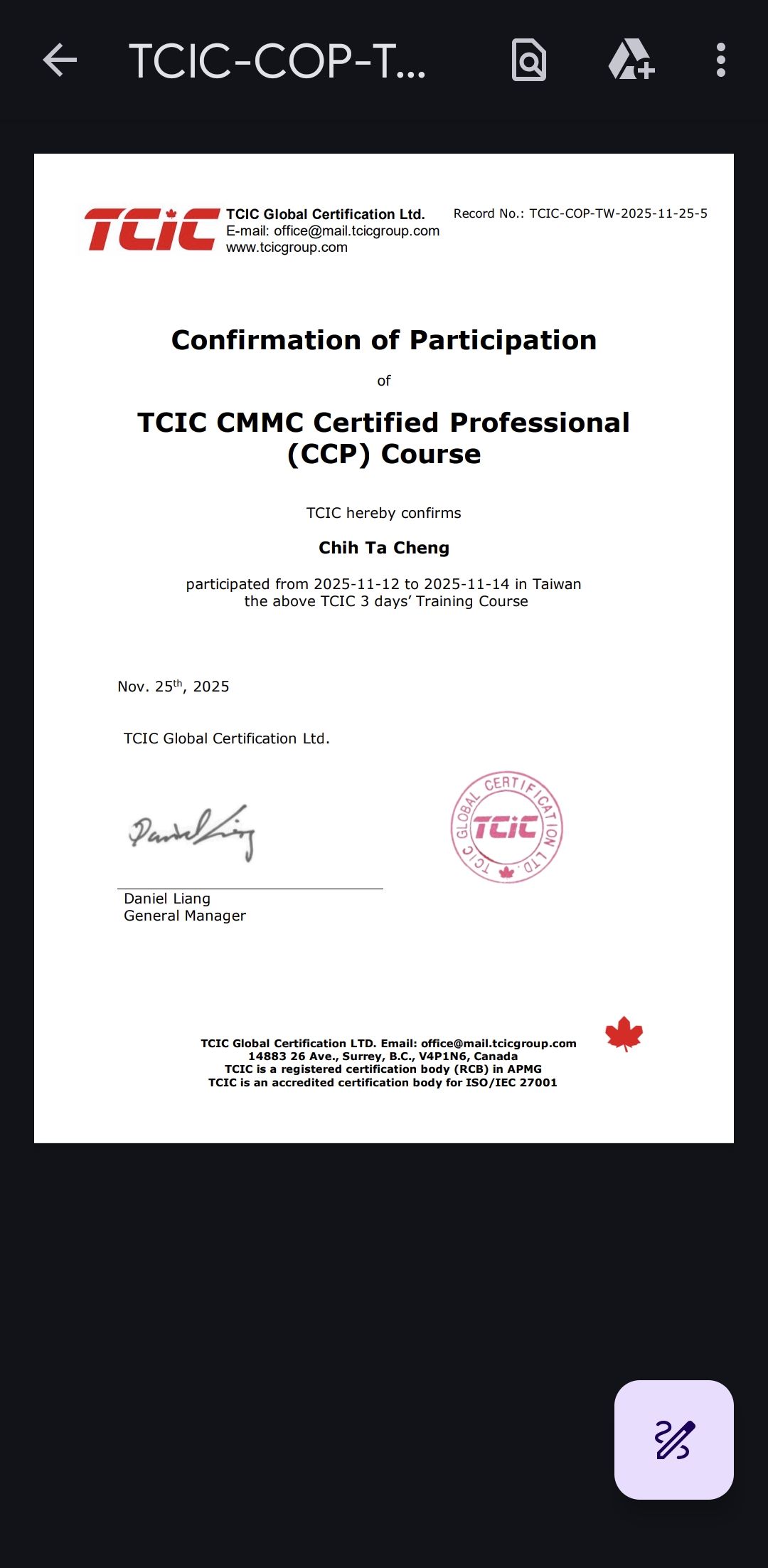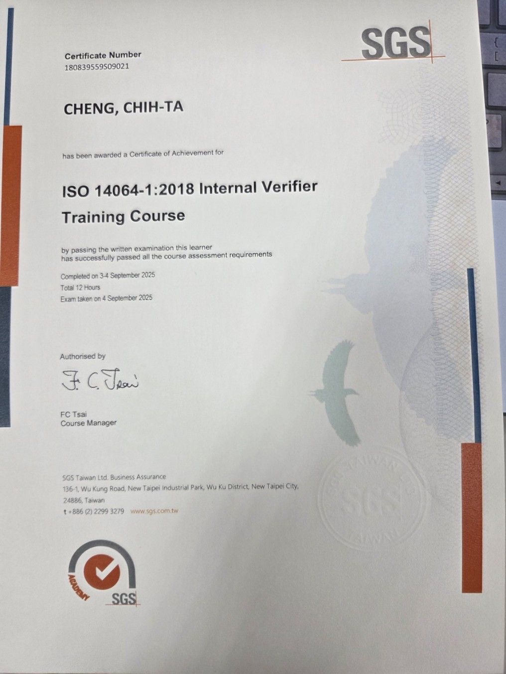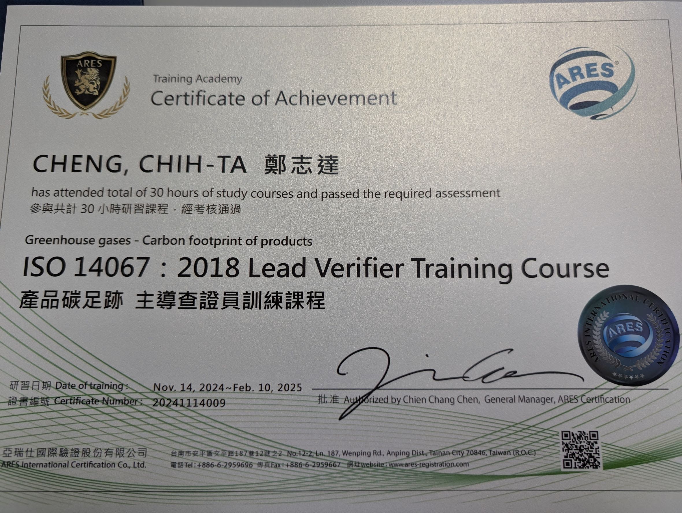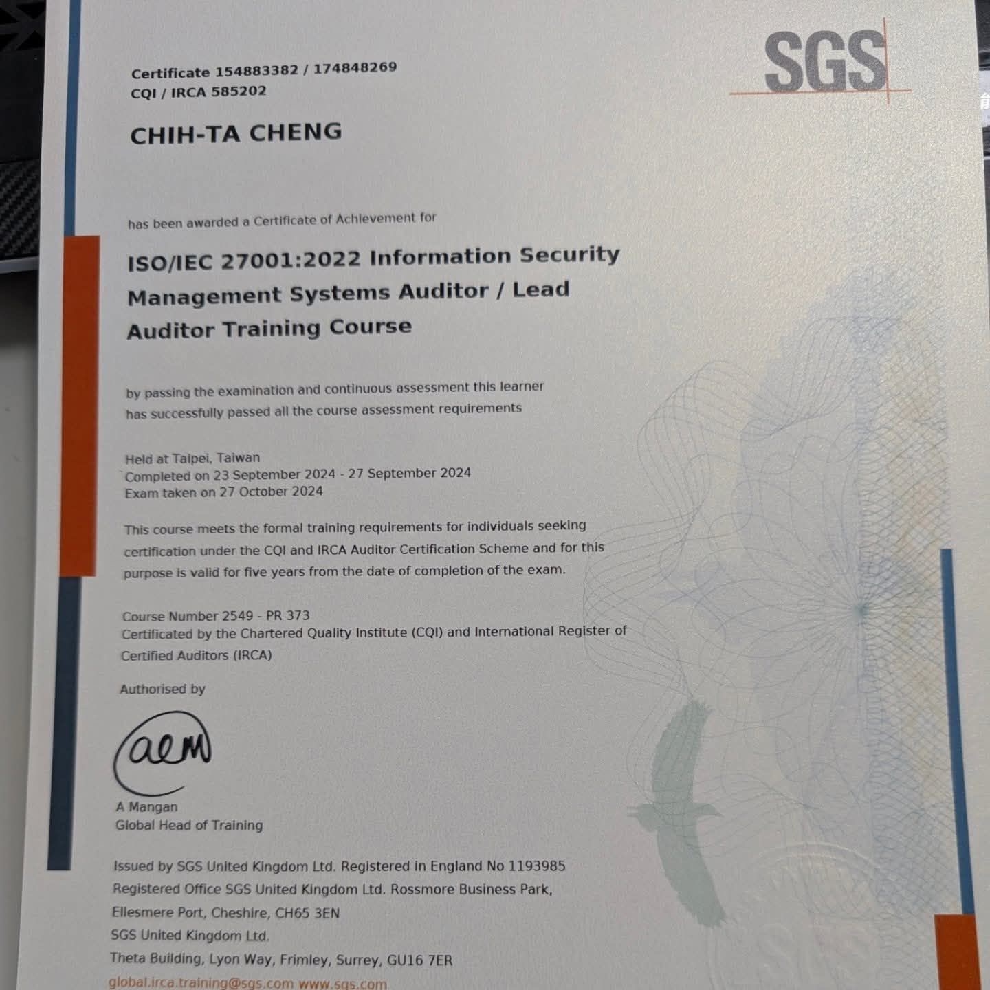 並通過ISO 27001資訊安全管理系統主導稽核員。
